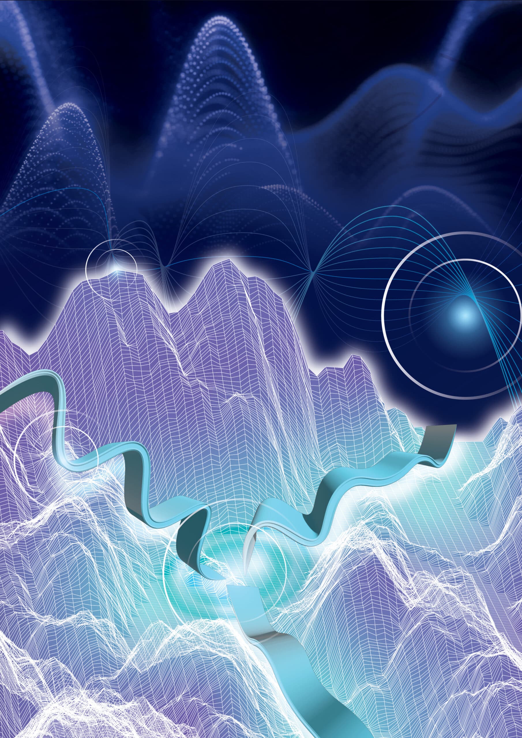 Rendre perceptible un phénomène physique invisible et hautement abstrait — la diffusion de vibrations quantiques à l’échelle nanométrique — dans une image unique, destinée à une couverture de revue scientifique internationale. L’enjeu était de trouver une analogie visuelle suffisamment intuitive pour être immédiatement lisible, tout en restant scientifiquement cohérente avec le contenu de l’article.